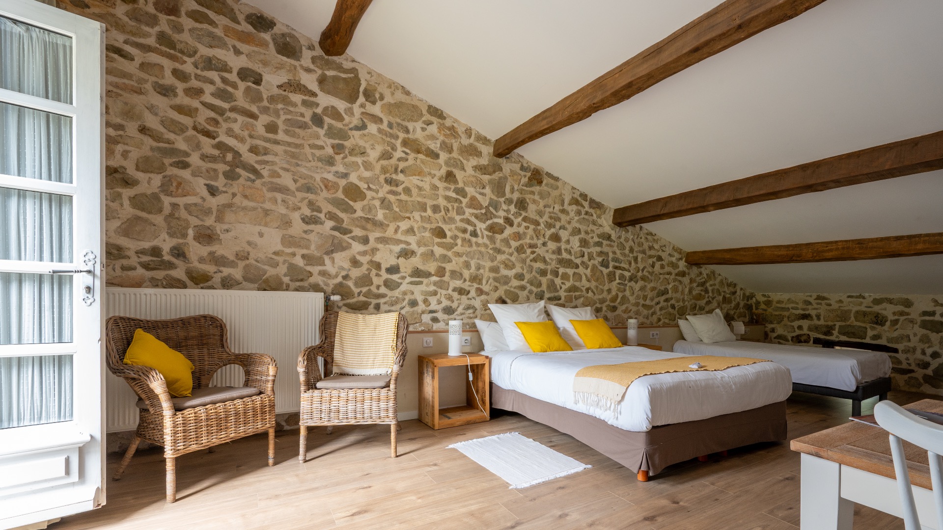 Les Marroux, daar waar de bergen en het zuiden samenkomen... Gelegen op 600m hoogte in Bouvières, een dorpje met 150 inwoners in de Drôme Provençale. We verwelkomen je graag in onze gastenkamers voor een rustig verblijf, waar natuur en ontspanning centraal staan. We hebben 4 comfortabele kamers voor 2 tot 4 personen, elk met eigen ingang en privéterras. In een kleine gedeelde ruimte vind je een 'kitchenette', uitgerust met een koelkast, microgolf, waterkoker, Senseo, borden & bestek. Géén kookplaten. In de tuin kan je gebruik maken van een plancha op gas. Logeren in Chambres d'hôtes Les Marroux, betekent dat je geniet van een kamer met ontbijt. Laat je 's ochtends verleiden door een gevarieerd ontbijtbuffet, bereid met verse, lokale en zelfgemaakte producten. Het huis is omgeven door een grote tuin en biedt een adembenemend panoramisch uitzicht op de omliggende heuvels. Je kunt genieten van het zwembad (verwarmd van half mei tot eind september), een siësta onder de lindebomen of van een spelletje petanque. We kijken ernaar uit om je te verwelkomen en dit kleine stukje paradijs met je te delen!