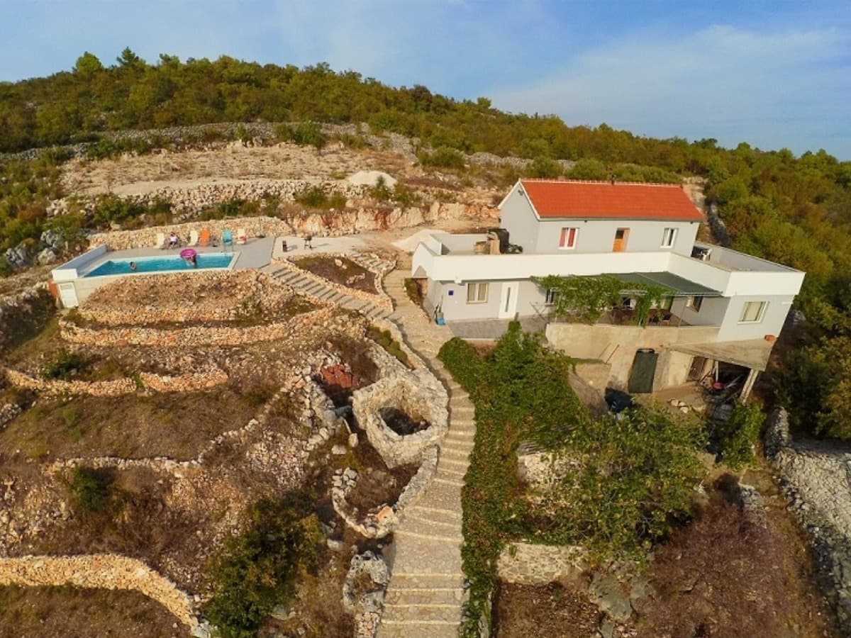 Het huis is zeer rustig gelegen in een doodlopende straat op een heuvel in een klein dorpje 15km van de kust (Marina, Trogir, Primosten).
